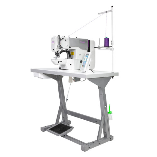 Universální elektronický ryglovací šicí stroj. Sériově je stroj dodáván se svorkami 20 x 4.5 mm, které jsou určeny pro délku max. ryglu 18 mm. 15 ryglovacích vzorů je ve standardu, tyto mohou být modifikovány pomocí LCD panelu. Přímý přístup k 7 preferovaným vzorům. V případě, že změníte držáky, můžete využívat až 100 zabudovaných vzorů s (vertikální, horizontální, půlkruhové, kruhové).