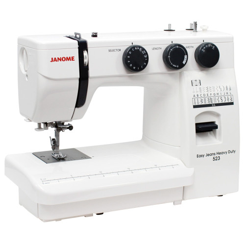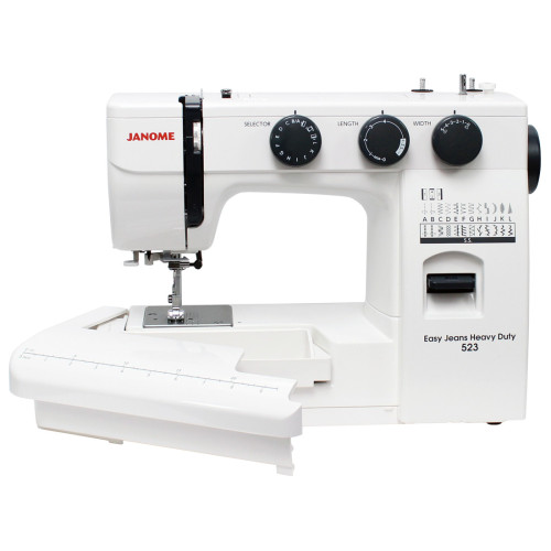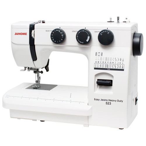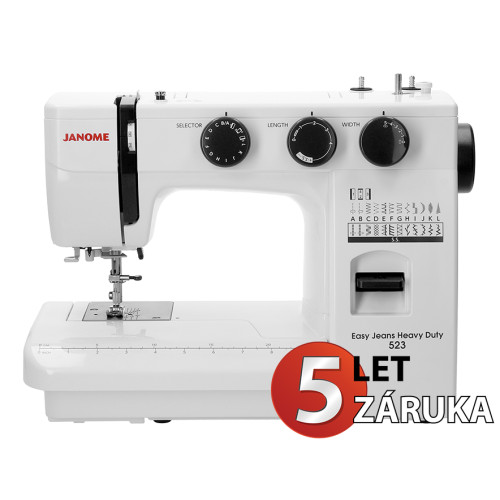 Šicí stroj Janome HD523 je robustní mechanický šicí stroj vhodný pro šití silných tkanin, džínoviny a zároveň je vhodný i pro elastické a jemné materiály. Janome HD523 je novější typ modelu Janome 419S (má více programů), který díky snadnému ovládání, není určen jen pro začátečníky. Oproti modelu Janome 415 má Janome HD523 manuální nastavení přítlaku patky, 8 programů navíc a 4krokovou knoflíkovou dírku. Tento stroj nemá jen sympatický vzhled, ale také úžasnou sílu a pevnost. Kromě vnitřní kovové konstrukce má celé rameno stroje z pevné slitiny, což jej zcela odlišuje od strojů podobné třídy. Proto si také může dovolit prošít až 8 vrstev materiálu. Využití volného ramena a širokého příslušenství je samozřejmostí.