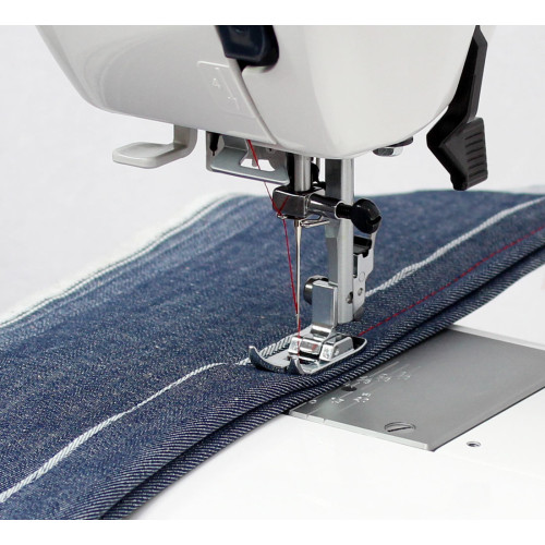 • Pro silné materiály a vrstvy - zvýšení přítlaku patky poskytuje lepší kontrolu nad materiálem a zajišťuje rovnoměrný posuv i velmi silných látek jako je džínovina, canvas nebo softshell
