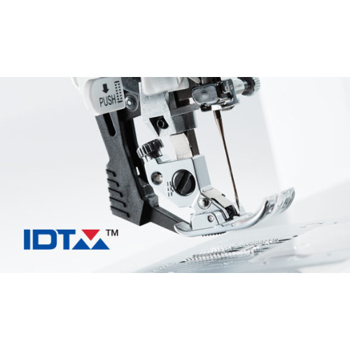 Originální systém IDT - Integrované duální podávání/transport - patentovaný systém firmy Pfaff - absolutně rovnoměrné podávání látky seshora i zespodu, vynikající pro jemné a velmi těžké materiály v několika vrstvách, zabraňuje posunu více vrstev materiálů mezi sebou. To stejné využijete při zapošití, kdy IDT systém dokáže pracovat obráceně a materiál je rovnoměrně posunut zpět a opět dopředu. Nemusíte dokupovat méně efektivní kráčející patku, která nemá takovou sílu. Systém lze jednoduše zapnout, nebo vypnout.