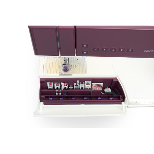 Připojte jakoukoli přiloženou přítlačnou patku a stroj vás bude informovat, zda je patka kompatibilní s vaším výběrem stehu. Navíc si vždy užívejte nejpokročilejších šicích funkcí a funkčnosti díky bezplatné automatické aktualizaci softwaru.