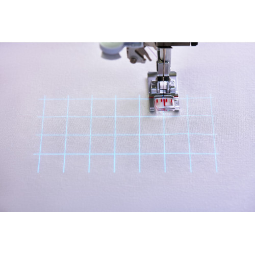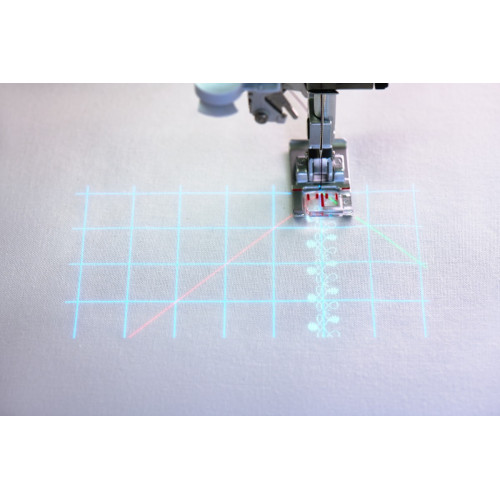Promítne pomocné vodící linky s nastavitelnými úhly a mřížku s nastavitelným měřítkem v režimu šití.