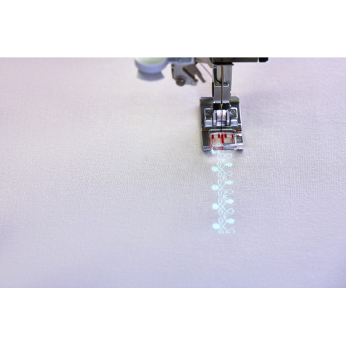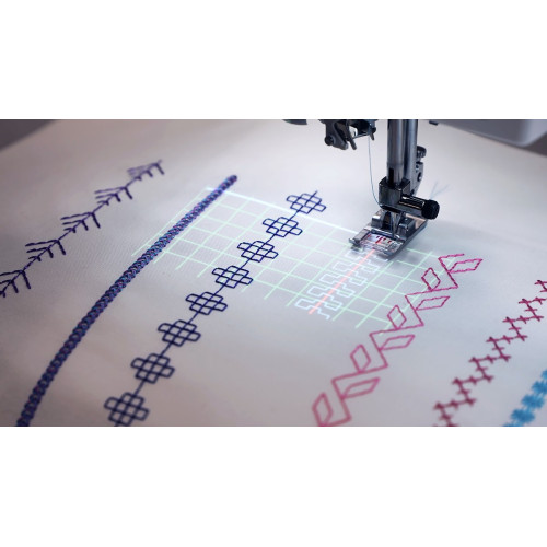 Snadno si prohlédněte vše, co plánujete na látce ušít. Umístěte zamýšlený steh pomocí mřížek, vodítek a náhledu stehu nebo promítněte výšivku v rámečku. Dosáhněte dokonale umístěného stehu a zároveň ušetřete čas.