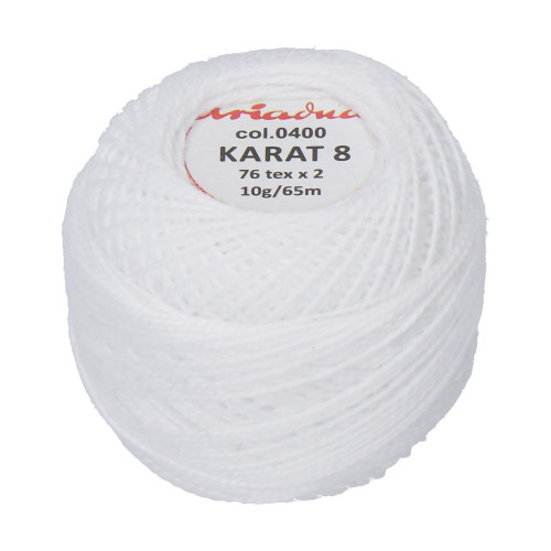 Karat je velmi oblíbená bavlněná nit určená pro všechny druhy plochých výšivek. Lze ji také použít na různé druhy ručních výšivek - síťové závěsy, interiérové doplňky, ubrousky a jiné dekorativní předměty.