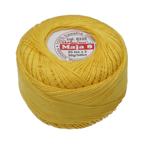 Maja je perleťová háčkovací příze z česané bavlny s dlouhými vlákny. Tato háčkovací příze je vypalovaná a dvojitě mercerovaná, což dodává vláknu jedinečný lesk. A co víc, stehy vyrobené s vlákny Maja získávají velmi pěknou strukturu.