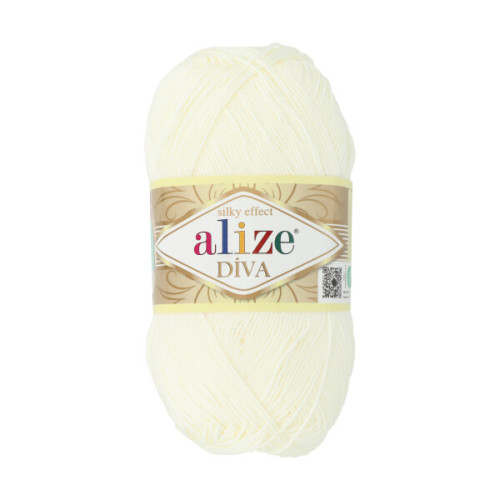 Příze Alize Diva je unikátní, vysoce kvalitní příze, kterou lze s úspěchem použít v mnoha řemeslných projektech. Je příze hladká, s jemným leskem. Je poměrně tenká, takže je ideální pro ozdobné prolamované vzory. Nezpůsobuje alergie.