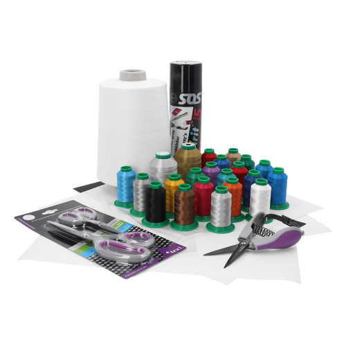 Startovací balíček velký pro vyšívání je určen pro všechny, kdo chtějí mít vyšívání bez limitů. Najdete zde všechny typy podkladových materiálů, dočasné lepidla, výběr nejpoužívanějších nití, s kterými můžete vyšít všechny typy výšivek. Prostě šijte, zkoušejte a později si přikupujte vše potřebné ve větších návinech. Sada obsahuje: