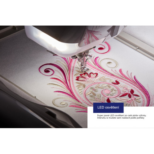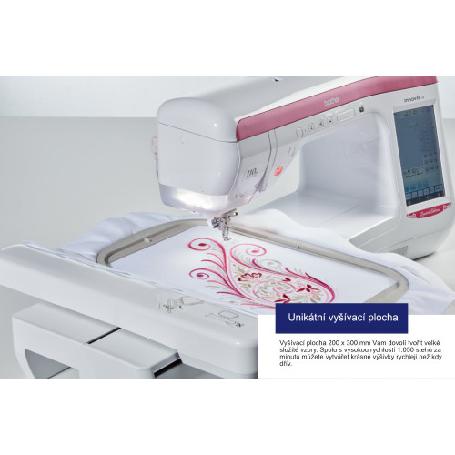 Limitovaná edice má oproti původnímu modelu větší vyšívací plochu 300x200 mm a umožňuje vyšít ještě větší a složitější vzory.