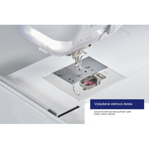 Průhledná patka poskytuje optimální přehled zejména při šití vrchních ozdobných švů na líci látky. P..