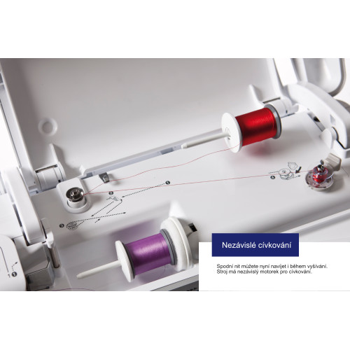 Nezávislé cívkování - navíjet cívky spodní nitě můžete i během vyšívání