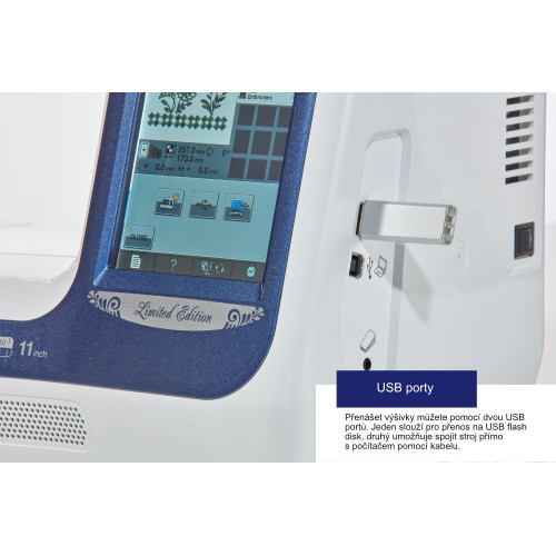 2x USB port pro přenos výšivek nebo šicích vzorů pomocí USB flash disku nebo kabelu přímo do PC