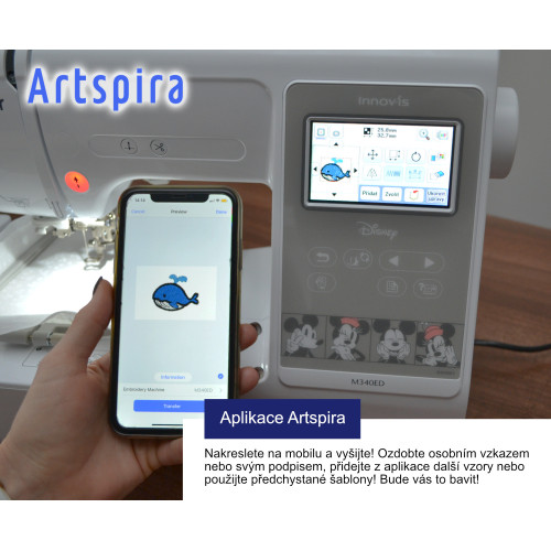 Obrázky výšivek na displeji vidíte krásně barevně a ovládání je česky. Jednodušší to už být nemůže!