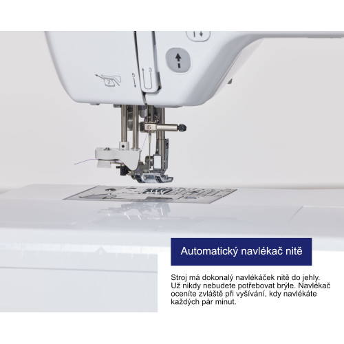 Stroj má dokonalý navlékáček nitě do jehly. Už nikdy nebudete potřebovat brýle. Navlékač oceníte zvláště při vyšívání, kdy navlékáte každých pár minut.