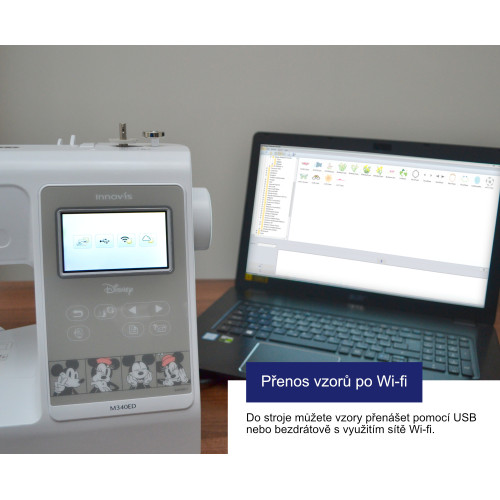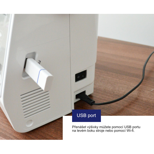 Vyšívací vzory do stroje můžete nahrávat jednoduše přes USB flash disk nebo pomocí Wi-Fi.