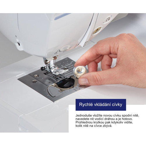 Stroj má rotační chapač - cívku nasazujete jednoduše shora, stroj se krásně čistí a je tichý.