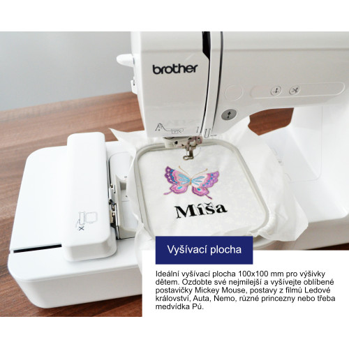 Brother Innov-is M340ED je kompaktní vyšívací stroj s moderním designem, je nástupcem osvědčeného modelu Brother M240ED - oproti předchozímu modelu má nově Wi-Fi připojení a 2 české fonty - nebude vám chybět Š nebo Ž!