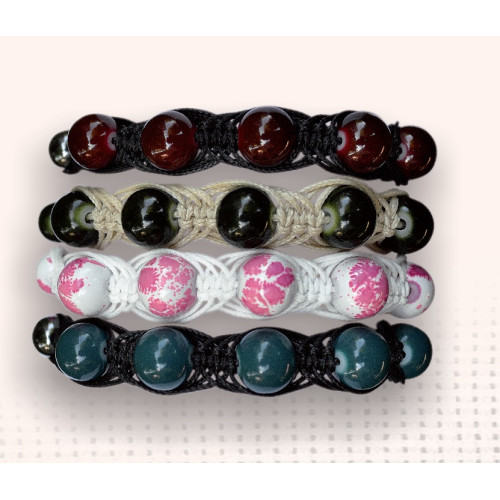KIT pro tvorbu náramku Shamballa - Vazba k vytvoření náramku je nejjednodušší prvek makramu. Sada obsahuje voskovaný prýmek Ariadna HEKTOR, korálky na výrobu jednoho náramku a návod. Sady jsou v různých barevných kombinacích (k dispozici až 12 kombinací korálků). Sady zasíláme náhodným výběrem barev.
