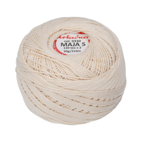 Maja je perleťová háčkovací příze z česané bavlny s dlouhými vlákny. Tato háčkovací příze je vypalovaná a dvojitě mercerovaná, což dodává vláknu jedinečný lesk. A co víc, stehy vyrobené s vlákny Maja získávají velmi pěknou strukturu.
