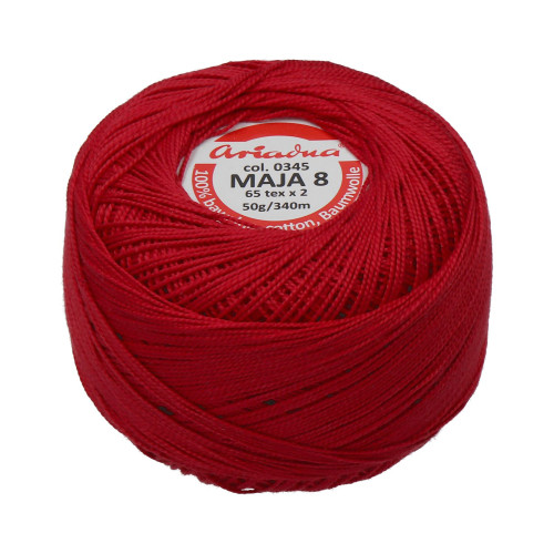 Maja je perleťová háčkovací příze z česané bavlny s dlouhými vlákny. Tato háčkovací příze je vypalovaná a dvojitě mercerovaná, což dodává vláknu jedinečný lesk. A co víc, stehy vyrobené s vlákny Maja získávají velmi pěknou strukturu.