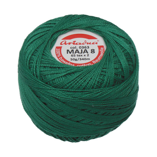 Maja je perleťová háčkovací příze z česané bavlny s dlouhými vlákny. Tato háčkovací příze je vypalovaná a dvojitě mercerovaná, což dodává vláknu jedinečný lesk. A co víc, stehy vyrobené s vlákny Maja získávají velmi pěknou strukturu.