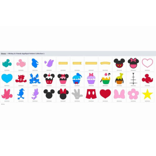 Karta se vzory Disney aplikace určené pro řezací plotry Brother.
