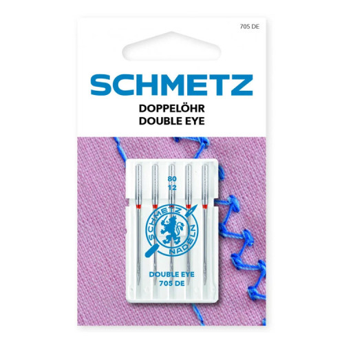 Jehly SCMETZ 705 DE s dvojitým očkem jsou určeny pro dekorativní steh. Jsou speciálně zkonstruované pro šití dvoumi nitěmi naráz. Pomocí dvou různých kontrastních barev docílíte velmi zajímavého efektu. Můžete je používat v domácích šicích strojích s vertikálním rotačním chapačem (Janome 423S a Janome 415) při použití šíře stehu 3,5 mm. Nemůžete je používat ve strojích s horizontálním chapačem.