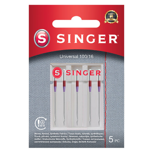 Univerzální jehly jsou vhodné na všechny typy tkaniny - díky zaoblené špičce a zúženému konci snadno prokluzují jak běžným materiálem, tak úplety.