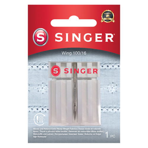 Jehly wings mají po stranách široká "křídla", pomoci kterých jehla vytvoří v materiálu díry pro speciální efekt. Vhodné pro volně tkané materiály.