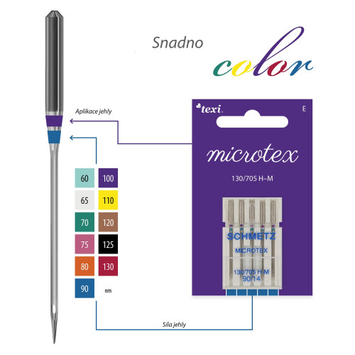 Pro snazší identifikaci jehel pro domácí šicí stroje jsou jehly Texi takto barevně označeny na stopce jehly: