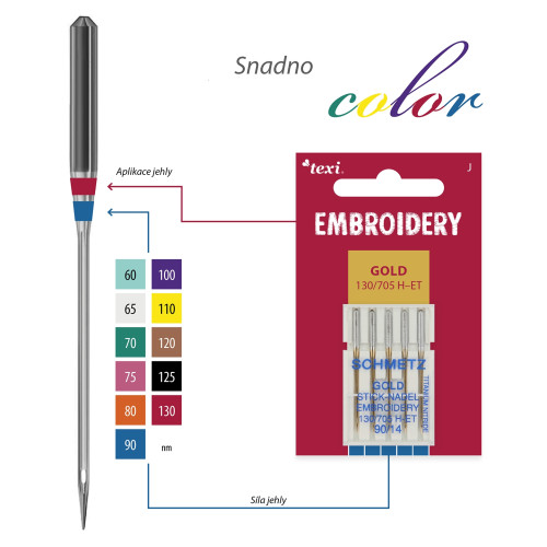 Vyšívací jehly zlaté TEXI EMBROIDERY GOLD 130/705 H-ET 5x90