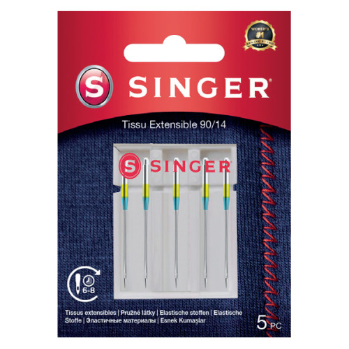 Metallic (pro metalické nitě - bez barevného označení), Quilting (pro quiltování - fialové označení), Universal (universální na všechny tkaniny - červené označení), Overlock 14SH (pro overlocky - bez barevného označení), Microtex (pro mikrovlákno, hedvábí - černé označení), Jeans (pro džínovinu - modré označení), Leather (pro kůži a koženku - hnědé označení), Hemstitch (pro obrubování - bez barevného označení), Embroidery (pro vyšívací stroje - bílé označení), Stretch (pro pleteniny - žluté označení, Overlock 14U (pro overlocky - bez označení).