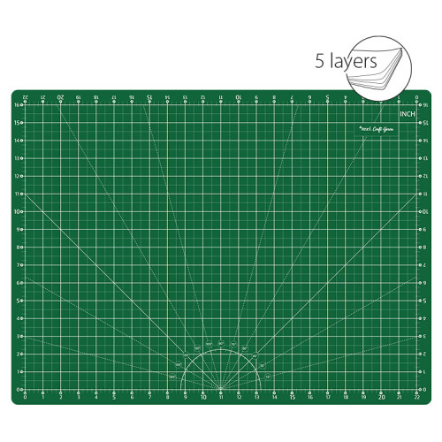 Podložka na patchwork 5vrstvá, vhodná pro řezání i silnějších materiálů, kde je potřeba vyvíjet větší tlak. Odlehčená, nejkvalitnější řezací podložka na našem trhu. Samosvorná funkce uzavře povrch podložky po řezu. Podložka je navržena především pro řezání látek pomocí řezacího kolečka, ale i skalpelů. Má přesnou měřící síť, navrženou pro praváky i leváky. Díky povrchu a síle 3 mm je podložka velmi kvalitní a zajistí, že řezák zůstane dlouhodobě ostrý. Podložka má jednu stranu s metrickou sítí (60 x 45 cm) a druhou stranu se sítí v palcích (22 x 16 palců). V kombinaci s řezacím kolečkem a pravítkem budete moci velmi jednoduše, rychle a přesně řezat pruhy i jiné tvary. Upozorňujeme, že měření v cm je přehlednější, a pokud využíváte předlohy českých prací, jsou stupnice v cm lepší, ale většina zahraničních prací je v palcích. Získáte neocenitelného pomocníka.