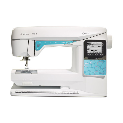 Šicí stroj Husqvarna Opal 670 je vysoce moderní, robustní a cenově výhodný elektronický šicí stroj od značky Husqvarna Viking s dotykovým displejem. Moderní dotykový displej ovládaný stylusem umožňuje pohodlnou volbu stehu a změnu nastavení. 200 druhů nejpoužívanějších stehů vč. krásných dekoračních stehů (viz obrázek), 4 typy abecedy, 7 typů automatické senzorové knoflíkové dírky a velká pracovní plocha 20 mm vpravo od jehly, dělá z tohoto šicího stroje skvělého pomocníka pro každou kreativní švadlenku. Opal 670 má řadu užitečných elektronických funkcí vč. automatického odstřihu nití, čidlo návinu spodní nitě. Stroj umožňuje šití bez nutnosti použít pedál (tlačítko start/stop) a následnou regulací rychlosti šití přímo na stroji (tuto funkci velice ocení začátečníci), polohování jehly nahoře / dole s fixací, zpětné šití a možnost uložit si do paměti stroje kombinace až 160 druhů stehů. Tento silný a robustní stroj překvapí propracovaným designem a kvalitou zpracování. Osvětlení zajišťují 3 LED diody.
