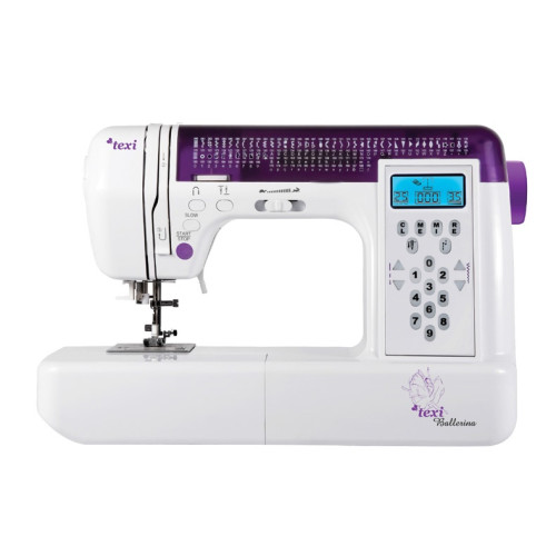 TEXI BALLERINA - všestranný elektronický šicí stroj s 200 šicími programy, včetně 8 typů automatických knoflíkových dírek, rovných, cikcakových, overlockových, strečových a ozdobných stehů. Obsahuje také abecedu, nastavitelnou délku stehu (až 5 mm) a šířku stehu (až 7 mm), automatický navlékač jehly, nastavení tlaku patky a rotační chapač, díky čemuž je ideální jak pro zkušené uživatele, tak pro začátečníky.