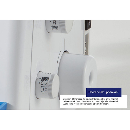 Díky diferenciálnímu podavači můžete látku i napínat nebo řasit