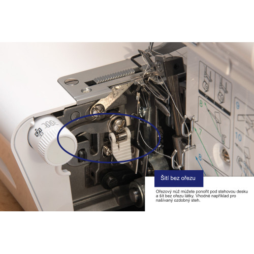 Možnost šití bez ořezu látky - jednoduše nůž vypnete
