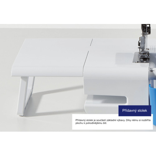 Výsuvný šicí stolek umožňuje šít s volným ramenem