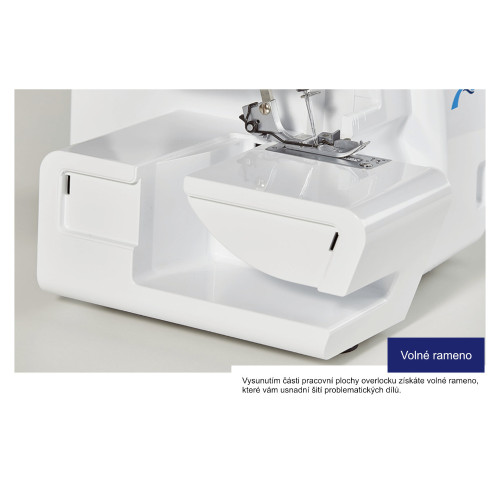 Klasický čtyřnitný overlock s diferenciálním podáváním a volným ramenem s možností použití jako třínitný. Volné rameno pro obšívání rukávů nebo nohavic.