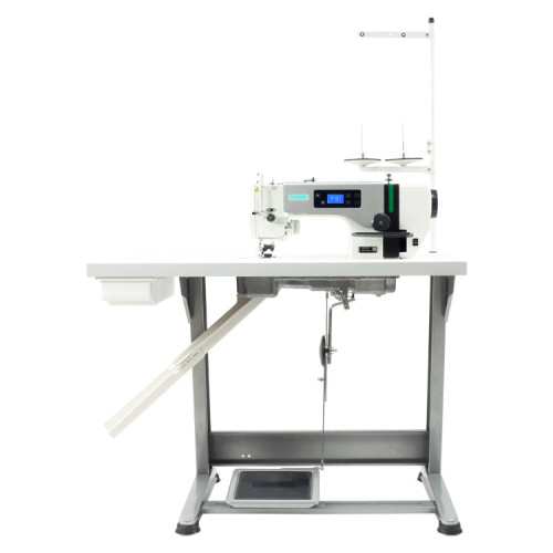 Univerzální 1jehlový šicí stroj s vázaným stehem 3,2 mm (lze vypnout), pro šití lehkých a středních materiálů. Součástí je energeticky úsporný AC Servo motor zabudovaný v hlavě stroje s automatickým polohováním jehly. Integrované 3stupňové, energeticky úsporné LED osvětlení pracovního prostoru.