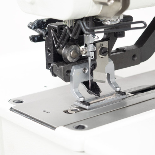 Stroj je vybaven bezpečnostním mechanismem, který zabraňuje proseknutí látky v případě přetržení nitě. Díky použití moderní technologie bylo mazání omezeno na nezbytné minimum (což zabraňuje vzniku skvrn na šitých výrobcích). Standardní LED osvětlení pracovního pole. Určeno pro šití lehkých a středně těžkých materiálů.