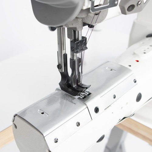 Jednojehlový šicí stroj s vázaným stehem s potrojným podáváním, rameno je o síle 80 mm, regulovatelným nastavením výšky kráčejících patek. Délka stehu až do 9 mm. Bezpečnostní spojka, která chrání chapač před poškozením, nastavitelný zdvih patky. Zdvih patky až 16 mm. Centrální mazání. Maximální rychlost 2.500 stehů za minutu.