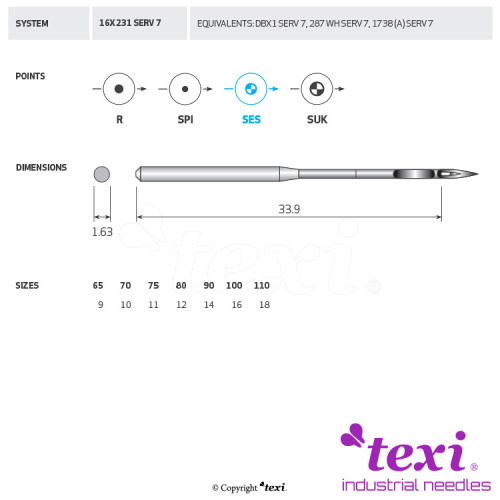 Strojové jehly pro průmyslové šicí stroje Texi 16X231 SES SERV 7 110