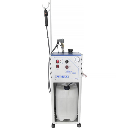 Parní vyvíječ o objemu 5 litrů s parní pistolí. Steam Tech Steamer umožňuje stříkat současně páru a dezinfekční kapalinu (také zředěný alkohol), čímž se zvyšuje účinnost dezinfekce. Dezinfekční kapalina se vloží do 18litrové nádrže a použije se společně s párou. K dispozici ve dvou verzích: standardní 1500 W a zvýšený výkon 2500 W - splňující nejvyšší požadavky.