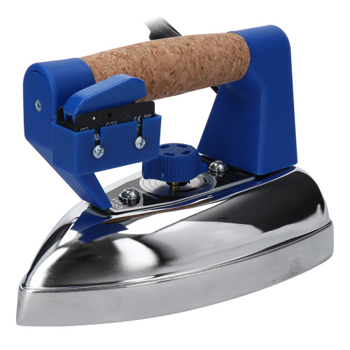 Průmyslová parní žehlička s dlouhou životností, která se používá pro připojení k parnímu vyvíječi nebo rozvodu páry. Žehlící plocha monoblock s vyhříváním 850 W (230 V, 50 Hz), korkové držadlo, bimetalický regulátor teploty, bezpečnostní pojistka teploty žehlící plochy, váha 1,6 kg, rozměr žehlicí plochy 19,5 x 11,5 cm, délka kabelu cca 2 m.