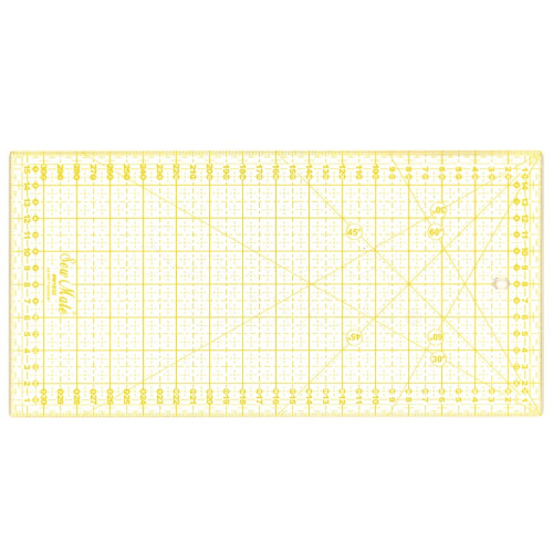 Pravítko o velikosti 16 x 32 cm, síla 3 mm se hodí pro měření a přesný řez čtverců, trojúhelníků a větších kusů. Hodí se také pro kontrolu přesné velikosti půlčtvercových trojúhelníků. Má metrické měřítko. Metrická verze, číslování zleva doprava, nebo opačně. Naznačené úhly 30, 45, 60°.