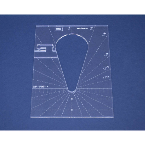 Na pravítku jsou vyznačeny vodící linky pro různé úhly, abyste mohli pravítko otáčet v pravidelných úhlech. Navíc má dvě díry a pro zabodnutí špendlíku a tvoření přesných ornamentů.