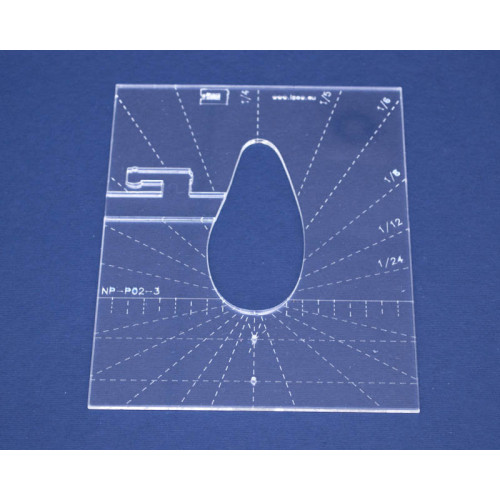 Na pravítku jsou vyznačeny vodící linky pro různé úhly, abyste mohli pravítko otáčet v pravidelných úhlech. Navíc má dvě díry a pro zabodnutí špendlíku a tvoření přesných ornamentů.