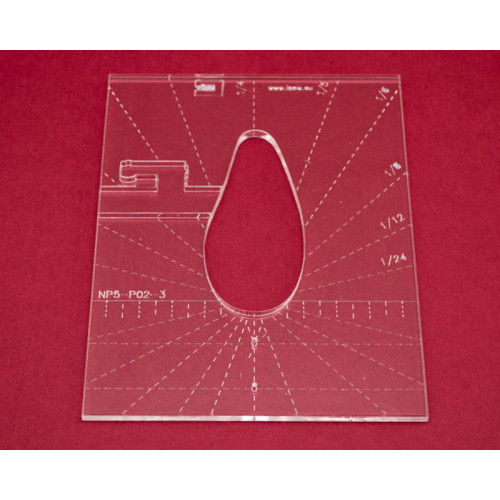 Na pravítku jsou vyznačeny vodící linky pro různé úhly, abyste mohli pravítko otáčet v pravidelných úhlech. Navíc má dvě díry a pro zabodnutí špendlíku a tvoření přesných ornamentů.