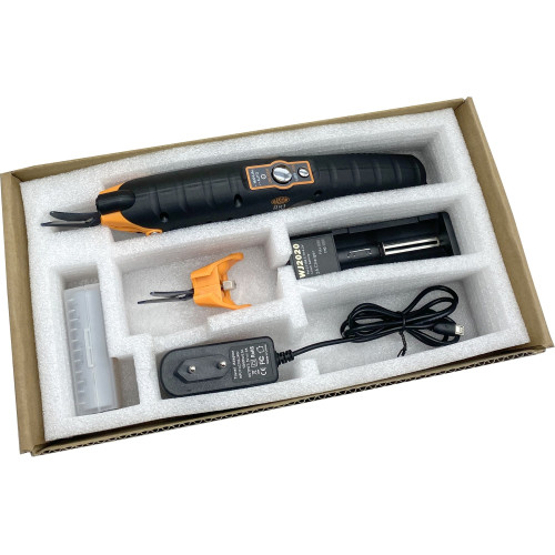 RASOR® RS1 jsou profesionální bateriové nůžky se střídajícími se čepelemi. Jsou ergonomické, pevné a mají vynikající stříhací výkon. RS1 má čepele s vložkami z wolframové oceli (Widia®), které zajišťují dokonalý střih bez zaseknutí a s čistou hranou materiálu. Baterie s technologií Li-Ion® zajišťují dlouhodobé používání s 3,6 V a 5 Ah. Rychlost motoru (19 000 ot./min) umožňuje pohybovat noži rychlostí 80krát za sekundu. Technologie Smart Button s Safety-Lock a automatickým režimem stříhání dělá z RS1 jedinečné nůžky na trhu. Integrovaná laserová světelná čára umožňuje sledovat linii pro rovný střih. RASOR® RS1 zaručuje dlouhé a bezproblémové používání díky nízké hmotnosti pouhých 370 gramů včetně baterie. S RS1 lze stříhat jakýkoli druh přírodních a technických textilií. Také lehké plasty, polymery, čalounické kožené a papírové výrobky. Díky ergonomickému a pohodlnému designu stříhají rovně i obrysově s vynikajícím výhledem na materiál.