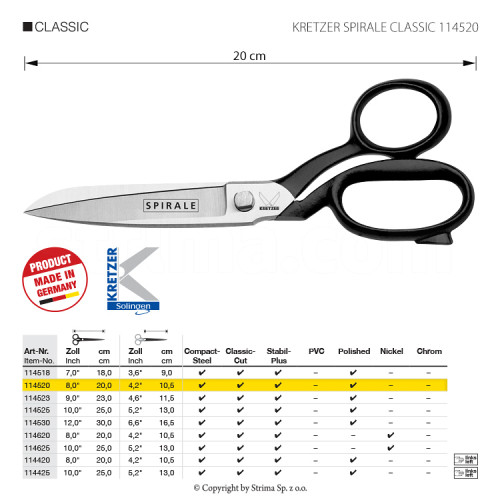 Krejčovské nůžky KRETZER SPIRALE CLASSIC 114520